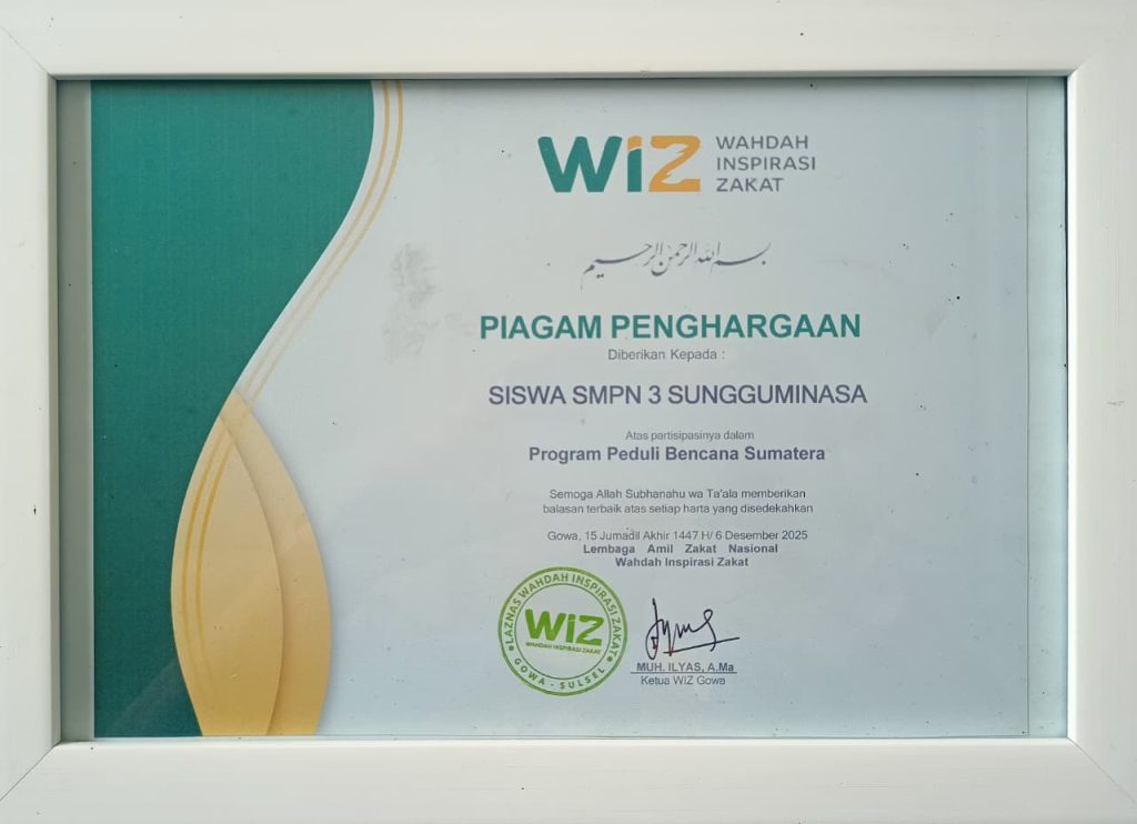 Perwakilan WIZ yang menerima bantuan menyampaikan apresiasi tinggi kepada SMPN 3 Sungguminasa atas komitmen dan kepedulian terhadap sesama. Bantuan yang terkumpul akan segera disalurkan kepada para penyintas bencana di wilayah Sumatera yang saat ini sangat membutuhkan dukungan.